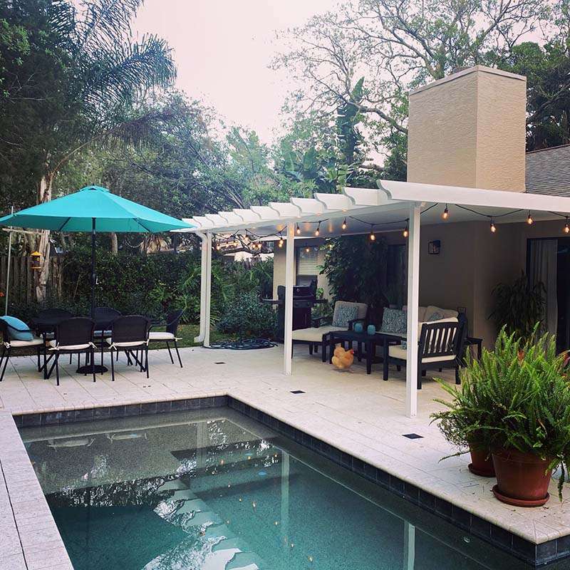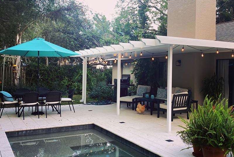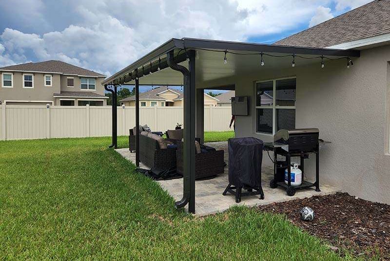 At Dulando Edgewater, we design, build, and install custom aluminum awnings that combine function and beauty. Unlike traditional metal awnings, aluminum resists rust and corrosion—making it the best choice for Florida’s hot and humid climate. Our Snap-N-Lock™ insulated panel systems deliver long-lasting strength, easy maintenance, and excellent energy efficiency.